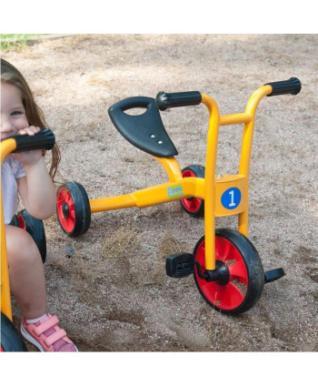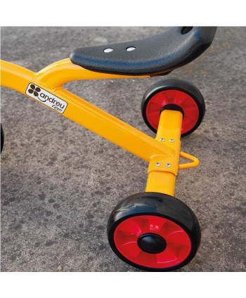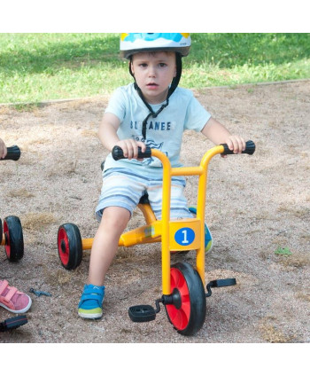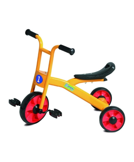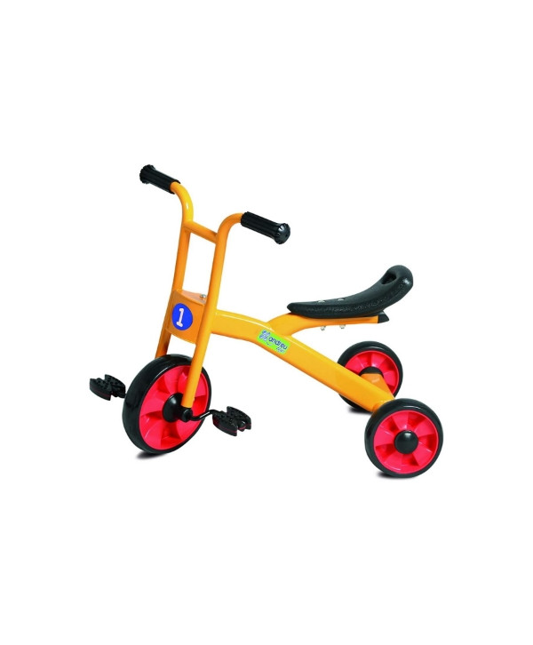 Triciclo sólido e resistente especialmente desenhado para o uso intensivo dos 2 aos 4 anos. Cumpre as normas de segurança EN71 da CE. É de fácil montagem. Assento com 2 posições.