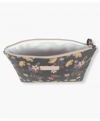 Necessaire Pasito a Pasito Garden em polipele cinza com padrão floral multicor. Bolsa especialmente concebida para transportar todos os produtos de higiene do bebé.
