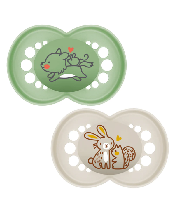 As chupetas MAM vêm em quatro tamanhos ideais para o desenvolvimento saudável da mandíbula e dos dentes.