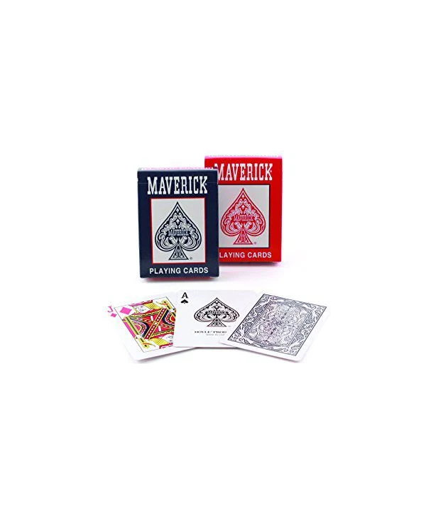Maverick foi um seriado da TV americana, popular na década de 60, que mostrava as aventuras dos irmãos Mavericks, jogadores de poker do Texas que viajavam por todo o velho oeste americano dando golpes e se envolvendo em confusões. A série inspirou a a criação do baralho, que era o carro chefe da Hoyle cards, quando posteriormente foi adquirida pela US Playing Cards Company, devido ao preço barato e sua popularidade. Você encontra aqui as cartas Maverick na versão Standard, nas cores Vermelho e Azul.