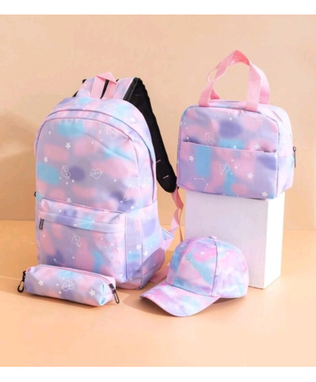 Conjunto de Mochila + lancheira + estojo + boné