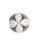 A bola sensorial Botton da Walking Mum é um brinquedo ideal para estimular o desenvolvimento sensorial e motor do seu bebé. Concebida com tecidos de veludo suave, esta bola apresenta diferentes padrões que incentivam o tato, a coordenação e a exploração precoce. Material extra macio e seguro, ideal para as mãos delicadas do bebé. Design fácil de agarrar e manusear. Estimula a coordenação entre mãos e olhos e a aprendizagem desde cedo. Esta bola de tecido desperta a curiosidade, o movimento e a exploração através da brincadeira. Perfeita para bebés desde os 0 meses, ajudando a melhorar a destreza e a capacidade de agarrar desde os primeiros meses de vida. A Walking Mum protege o seu bebé utilizando os melhores tecidos, livres de corantes azo e substâncias nocivas para a saúde. Cumpre a norma europeia EN-71 de segurança dos brinquedos +0 anos.