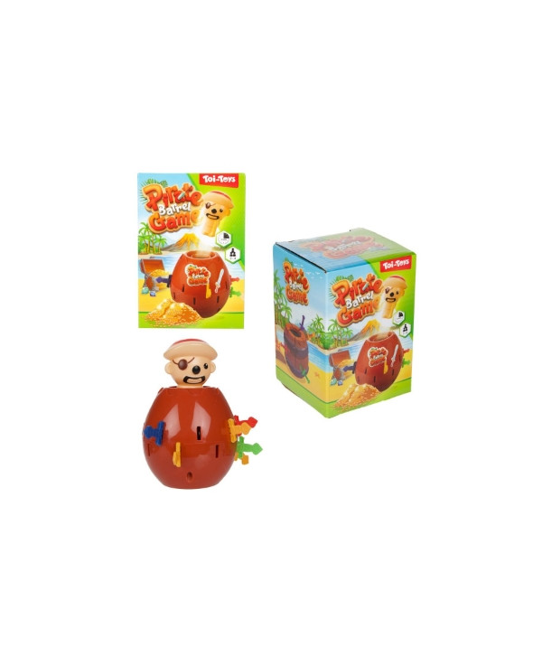 O Jogo do Pirata no Barril é simples e divertido. Cada jogador insere uma espada no barril, um de cada vez. Quem acertar o buraco secreto faz o pirata saltar. Ideal para momentos animados em família ou entre amigos.