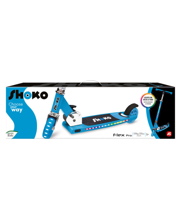 O SHOKO Flex Pro é uma trotinete de manobras com estilo e brilho! Moderna, dinâmica e altamente resistente, foi especialmente concebida para o uso diário por crianças que querem desenvolver as suas habilidades na patinagem e impressionar com as suas acrobacias!