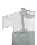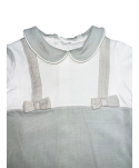 O conjunto é composto por um prato, uma taça pequena, um copo e uma colher. O anel antiderrapante na base da loiça garante uma melhor aderência à mesa.