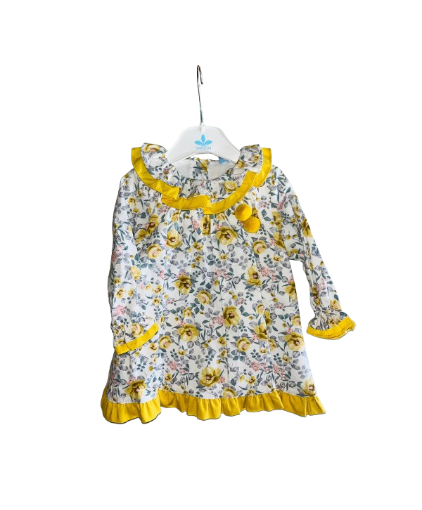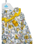 Vestido Florido Branco e Amarelo com Pompons - Sardon