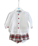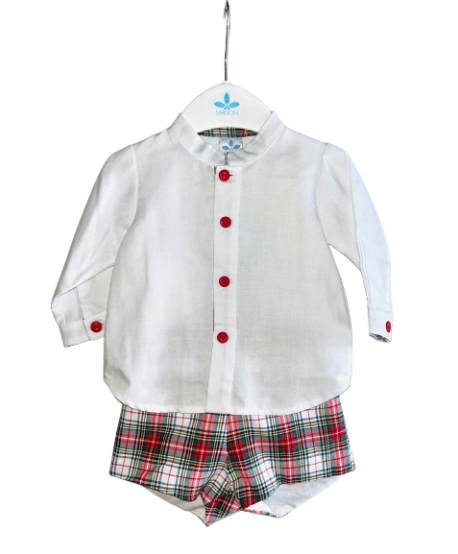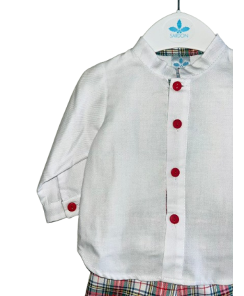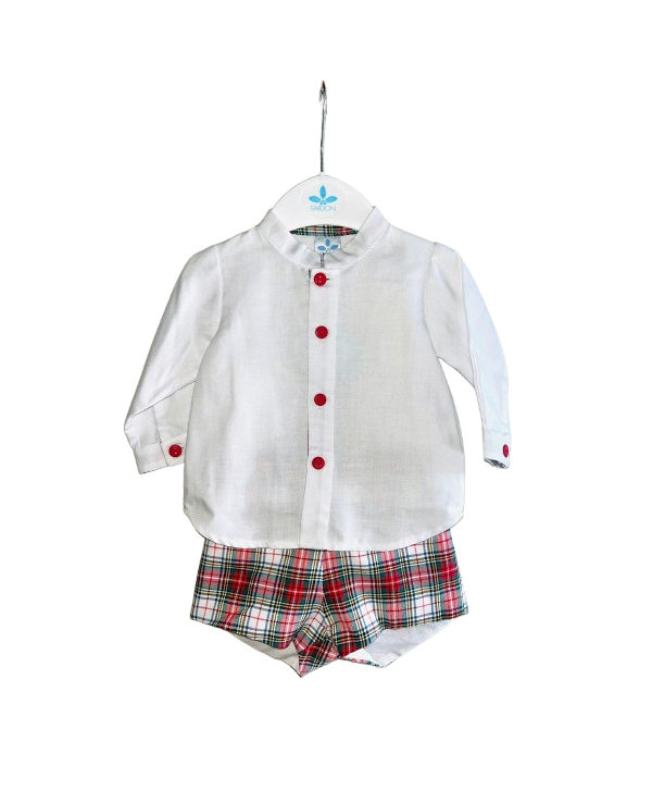 Conjunto Camisa Branca e Calção Vermelho Xadrez - Sardon