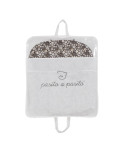 Elegante saco de dormir para bebé 3 em 1 Pasito a Pasito Blossom Cloud adequado para outono/inverno. Exterior em tricot cinza, interior em algodão com padrão floral cinza em fundo castanho. Costas em material anti-transpirável para evitar a transpiração excessiva do bebé.